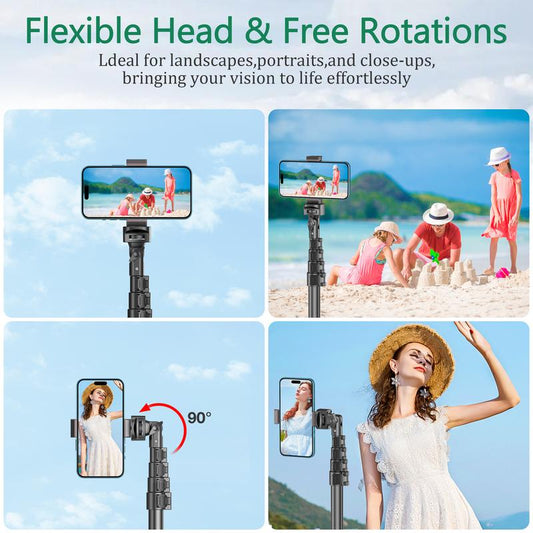 All-In-One 62" Portable Selfie Stick Tripod with Bluetooth Remote, Universal 360° Phone Holder for Iphone, Samsung, Gopro & Cameras - Perfect for Vloggers, Travel & Group Shots