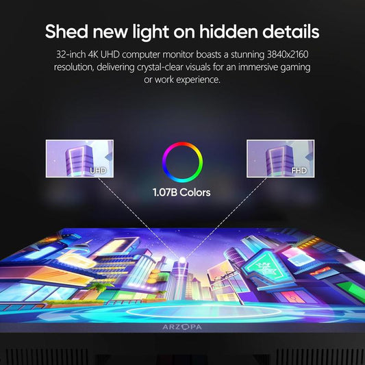 ARZOPA 32” 4K UHD (3840X2160) Gaming Monitor 144HZ IPS Screen, Height Adjustable Stand, VESA Mountable, Support AMD Freesync & NVIDIA G-Sync, DP 1.4, HDMI 2.1 -M3RC