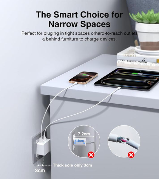 50W USB C Charger Block Thin Flat Charging Cube, 2Pack 5-Port Type C Fast Charging Block Dual Charger PD Power Adapter&Qc 3.0 Wall Plug Multi USB Brick for Iphone 16/15/14/13/12Pro Max Ipad Samsung